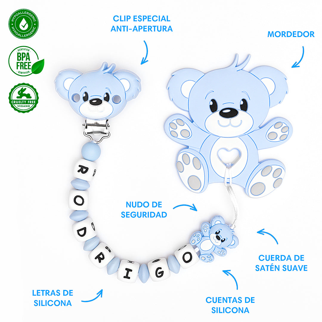 Chupetero Exclusivo 100% Silicona Oso Azul + Mordedor Silicona