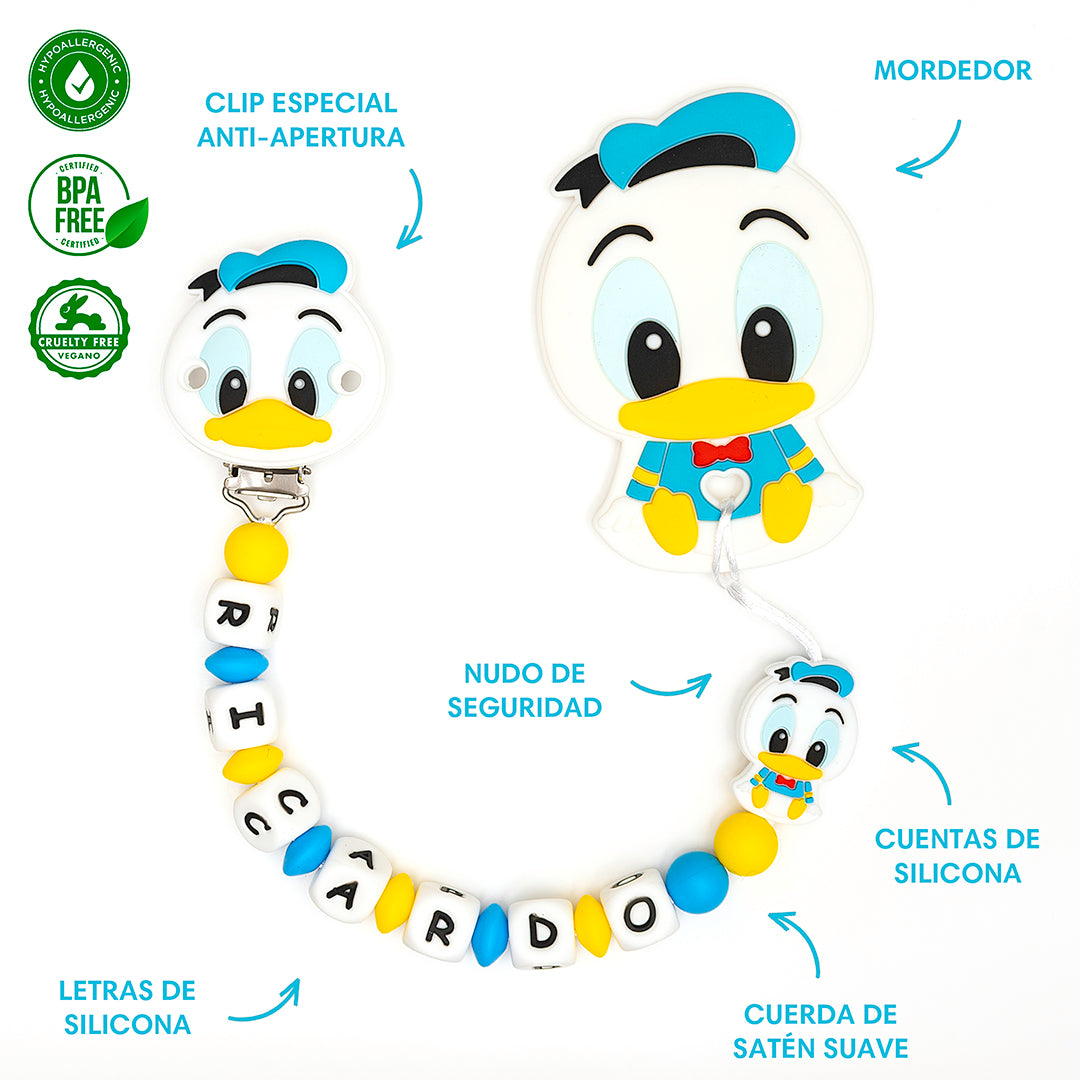 Chupetero Exclusivo 100% Silicona Pato Donald + Mordedor Silicona