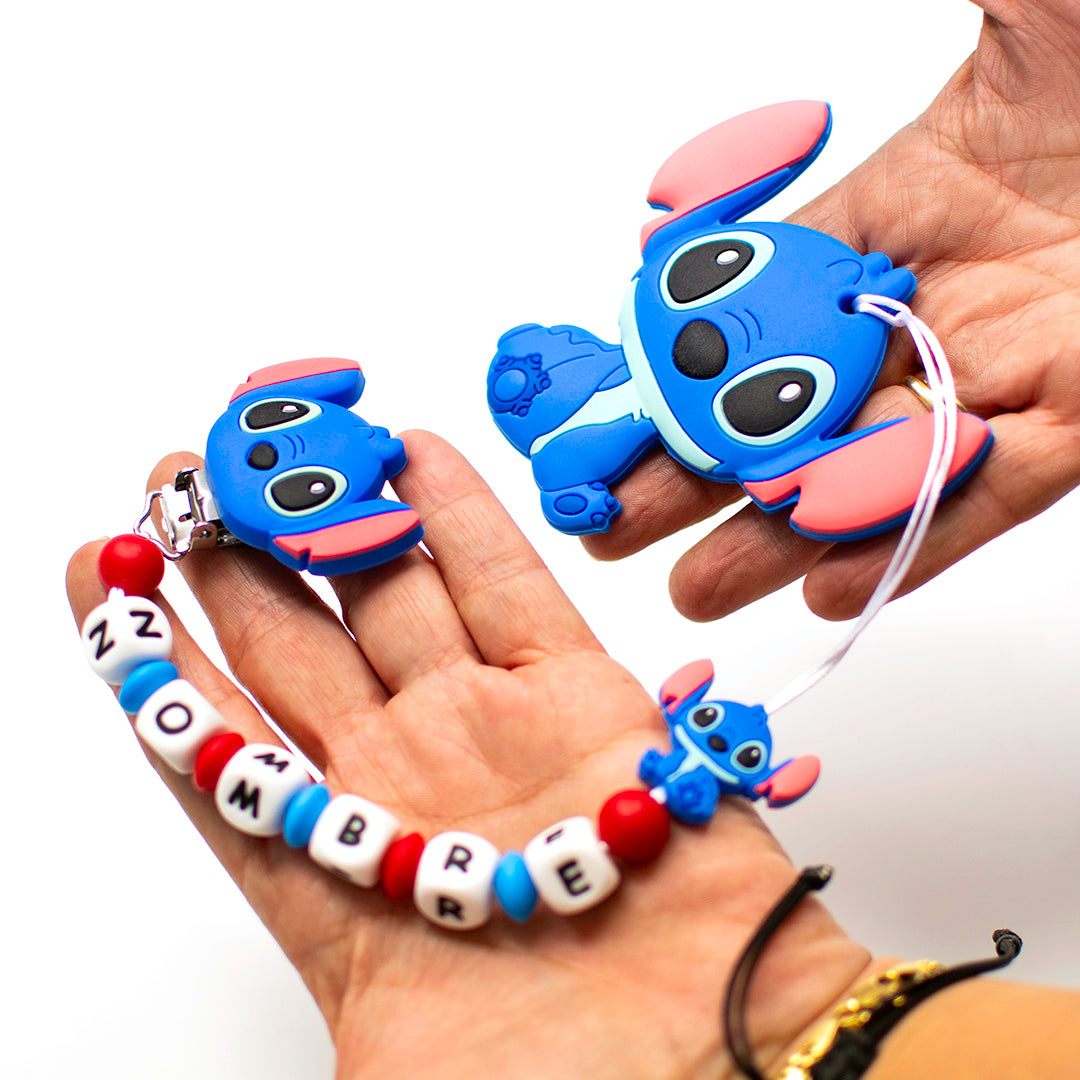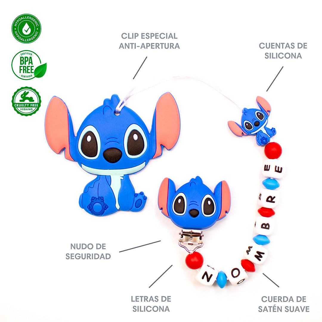 Chupetero Exclusivo 100% Silicona Stitch + Mordedor Silicona